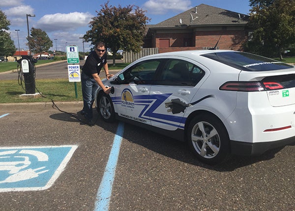 Electric vehicle (EV) drivers can now charge their cars at Polk-Burnett Electric Cooperative’s charging station in St. Croix Falls, between Midwest One Bank and Marketplace Foods off Hwy. 8. The charging station is free to the public.