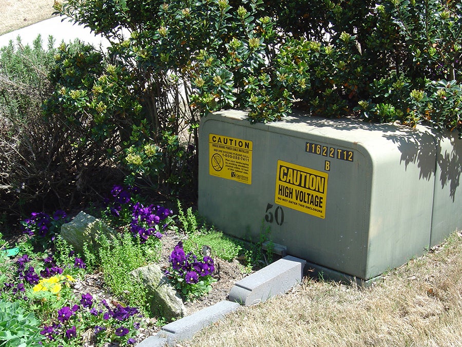 Warning: Gardens, landscaping, decks, fences and buildings are a safety hazard if built too close to underground transformer boxes, power poles and other utility equipment: