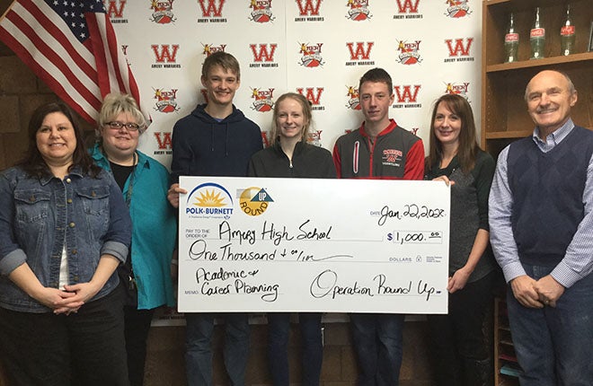 Above: Amery High School received a $1,000 grant from Polk-Burnett’s Operation Round Up to help the junior class tour universities and technical colleges.