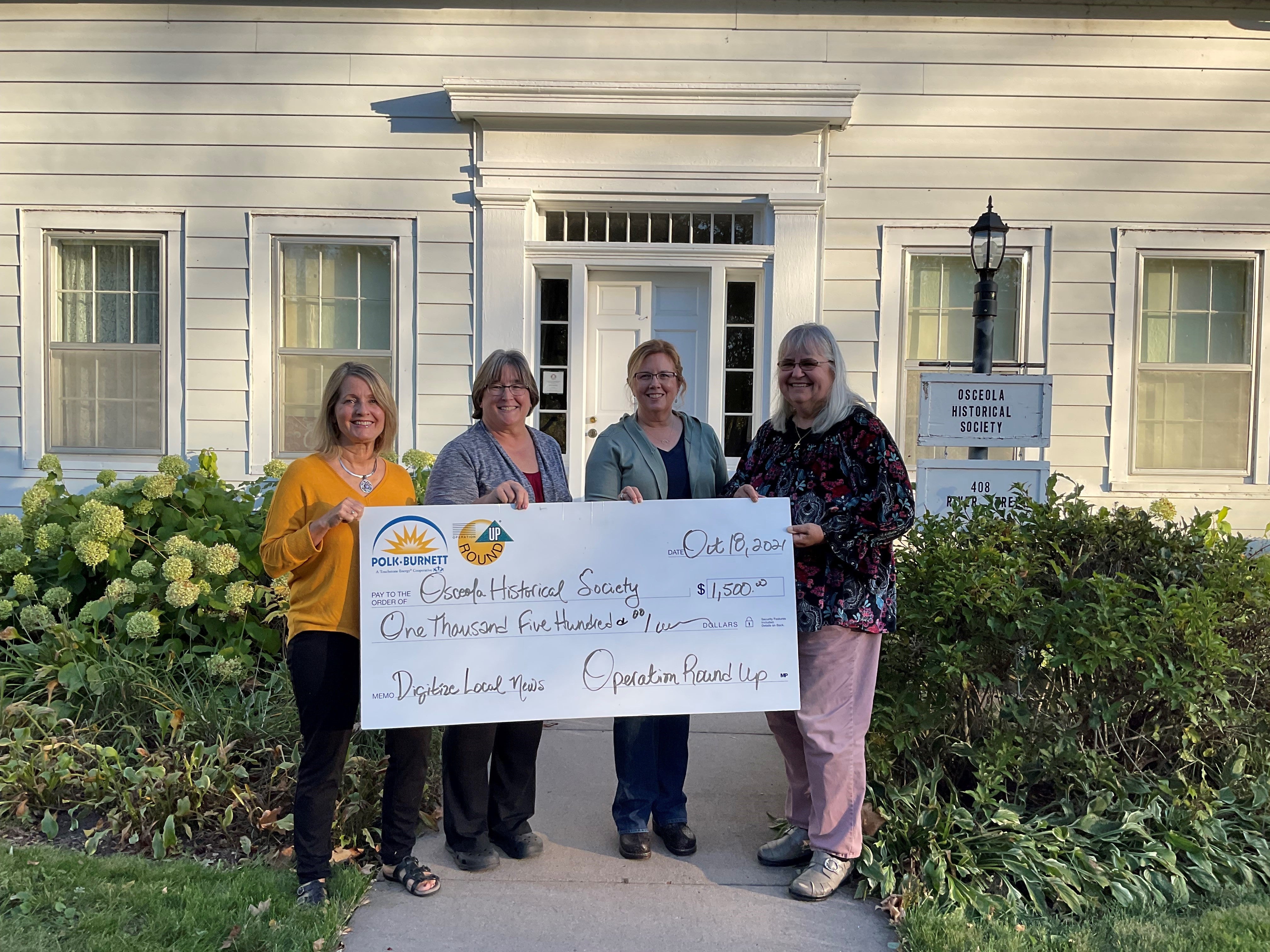 ABOVE: A $1,500 grant from Operation Round Up was awarded to the Osceola Historical Society, where volunteer members are working to digitize 100 years of local newspapers.